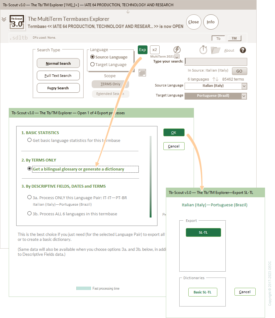 - The first one and the fastest, shown above, starting from the Export Module, option 2, "By TERMS ONLY", or